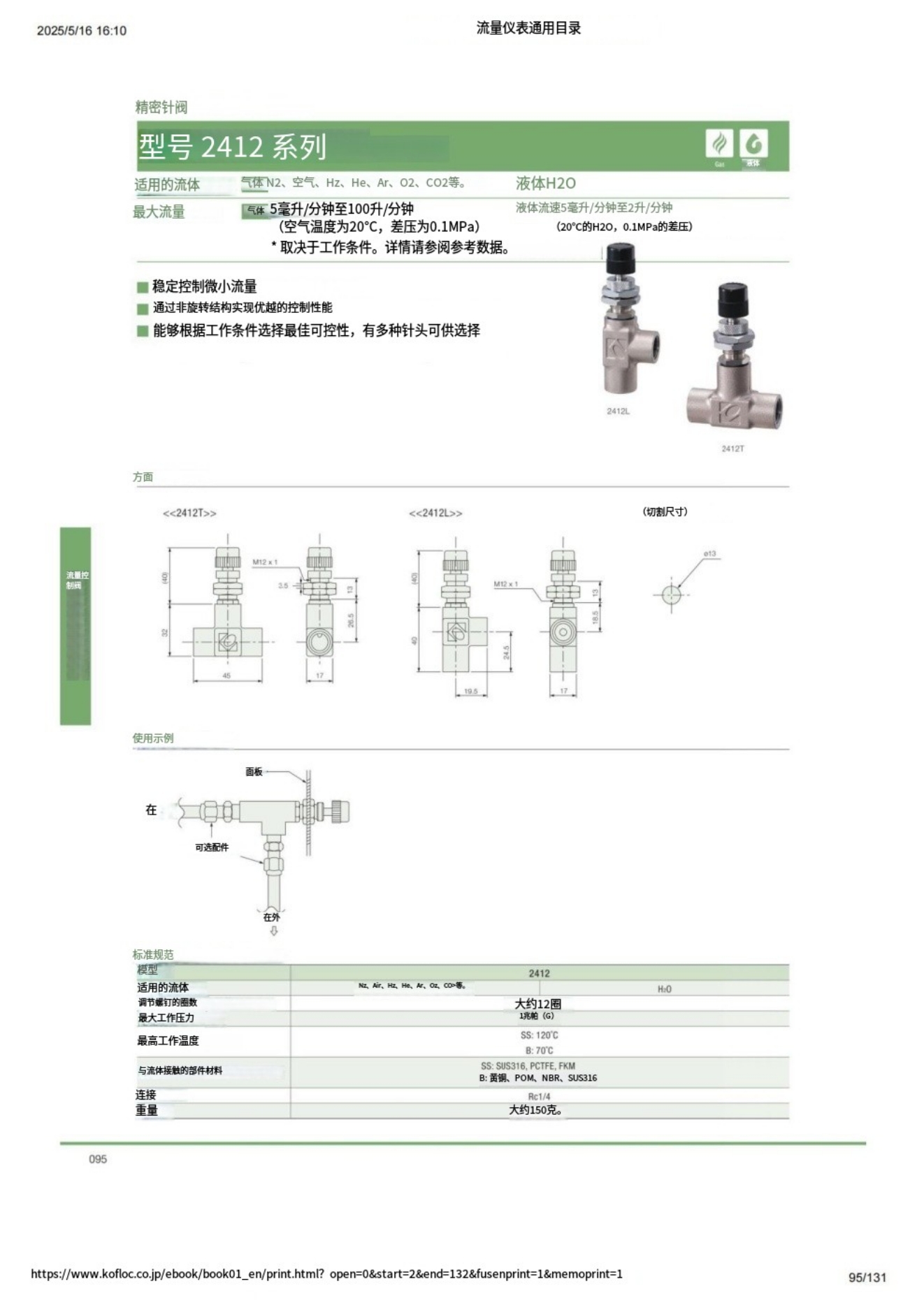 ■流體: 氣體N?、空氣、H?、He、Ar、O?、CO?等 液體H?O ■流量范圍: 氣體 5mL/min~100L/min(空氣 20°C DP:0.1MPa) 液體 5mL/min~2L/min(H?O 20°C DP*:0.1MPa) *DP是指工作壓差條件。 可穩定控制微小流量。 在非旋轉結構中具有卓越的控制性能。 多種針型,最適合您的需求。 RoHS 指令。